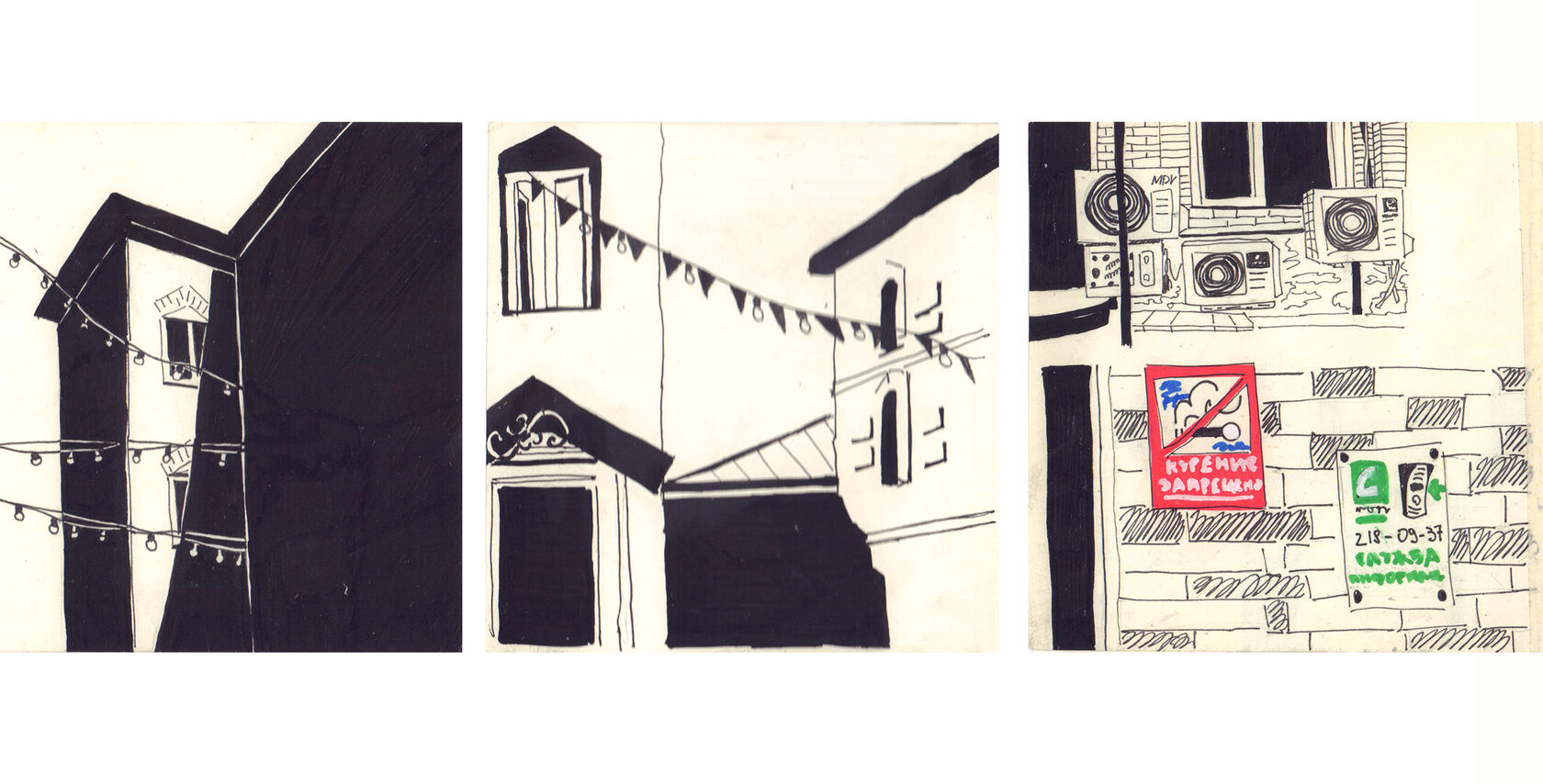 Первый городской пленэр — всегда волнительно, но очень интересно. Вдохновляемся таким разным и сложным городским пейзажем, выполняя графические задания.