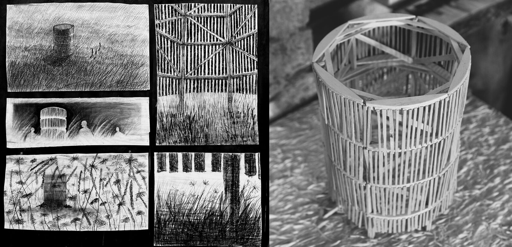 Мы воспринимали луг, как открытую книгу, в которой важна каждая строчка и глава. Поэтому мы создавали наш объект, собирая композицию из ценных выделенных нами качеств луга, отражая красоту и уникальность среды, в которой работаем. Как цветы и травы заплетаются в стог, так и наш объект собирается из образов и ощущений.