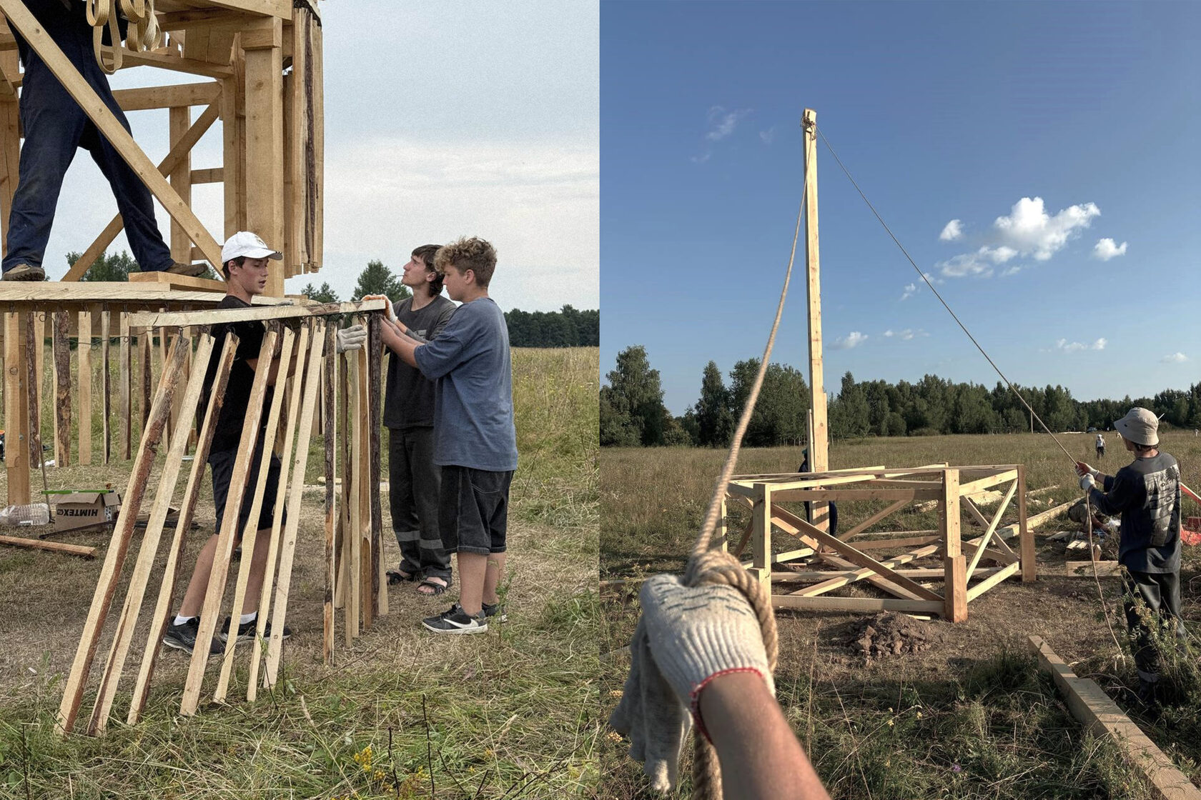 “Я вспоминаю тот предпоследний вечер, когда ребята прикручивают последнее кружало, мы сидим на лугу рядом с объектом, смотрим на него, нас обдувает мягкий летний воздух, небо розовое от заката, доски горбыля стучат и звучит легкий скрип металла, Маша шепотом говорит: “Это любовь”, и это то, что каждый из нас ощущал в тот момент, казалось, что эту минуту хочется прочувствовать сполна и запомнить ее навсегда…” — так говорит о своих ощущениях после завершения стройки Катя Зайцева.