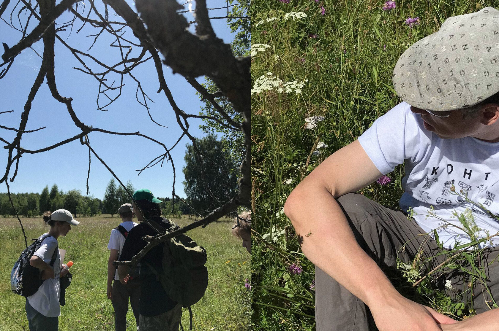 Первые два дня мы изучали условия жизни будущего объекта, прислушивались к своим ощущениям, делали первые эскизы, обсуждали идеи и слушали полезные рекомендации Николая Белоусова. Один из ценных советов, который организаторы дали всем участникам практикума – почувствовать луг через его душистое разнотравье и живописность цветов. Действительно, место живое и красочное! Нашей главной идеей, в первую очередь, было уважительно отнестись к уже сформировавшейся среде, интерпретировать будущий объект через её преимущества.